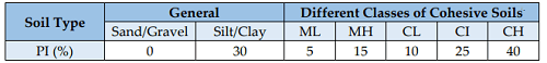 This section focuses on the analytical modeling of the soil columns to calculate dynamic material properties, including density, Plasticity Index (PI), Shear Wave Velocity (SWV), shear modulus degradation, and damping ratio, which governs the amplification of seismic excitations. The density and PI values for each soil layer are determined based on its soil type using Table A1 and A2. The SWV is determined using the "SWV Models", while the shear modulus and damping properties are determined using the "Material Models" specified in the input section. The calculated density, SWV, and PI values for the simplified soil column models are presented in Table 1.